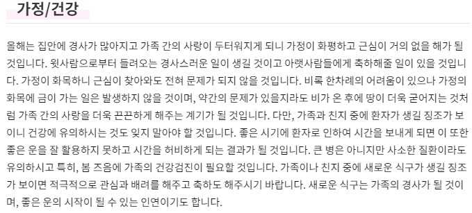 농협 2021년 무료 토정비결 가정/건강운