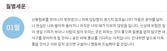 농협 2021년 무료 토정비결 월별 세운