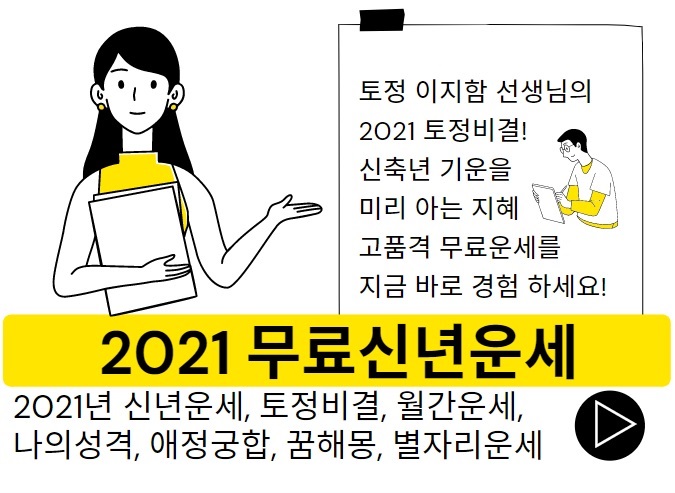 이번 포스팅에서는 2021년 무료토정비결을 제공하는 사이트를 안내해 드립니다.