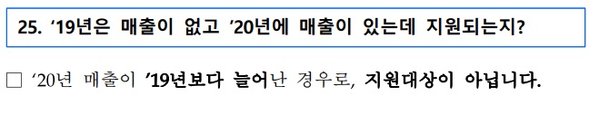 답변은 아닙니다. 20년 매출이 19년보다 늘어난 경우는 지원대상이 아닙니다.